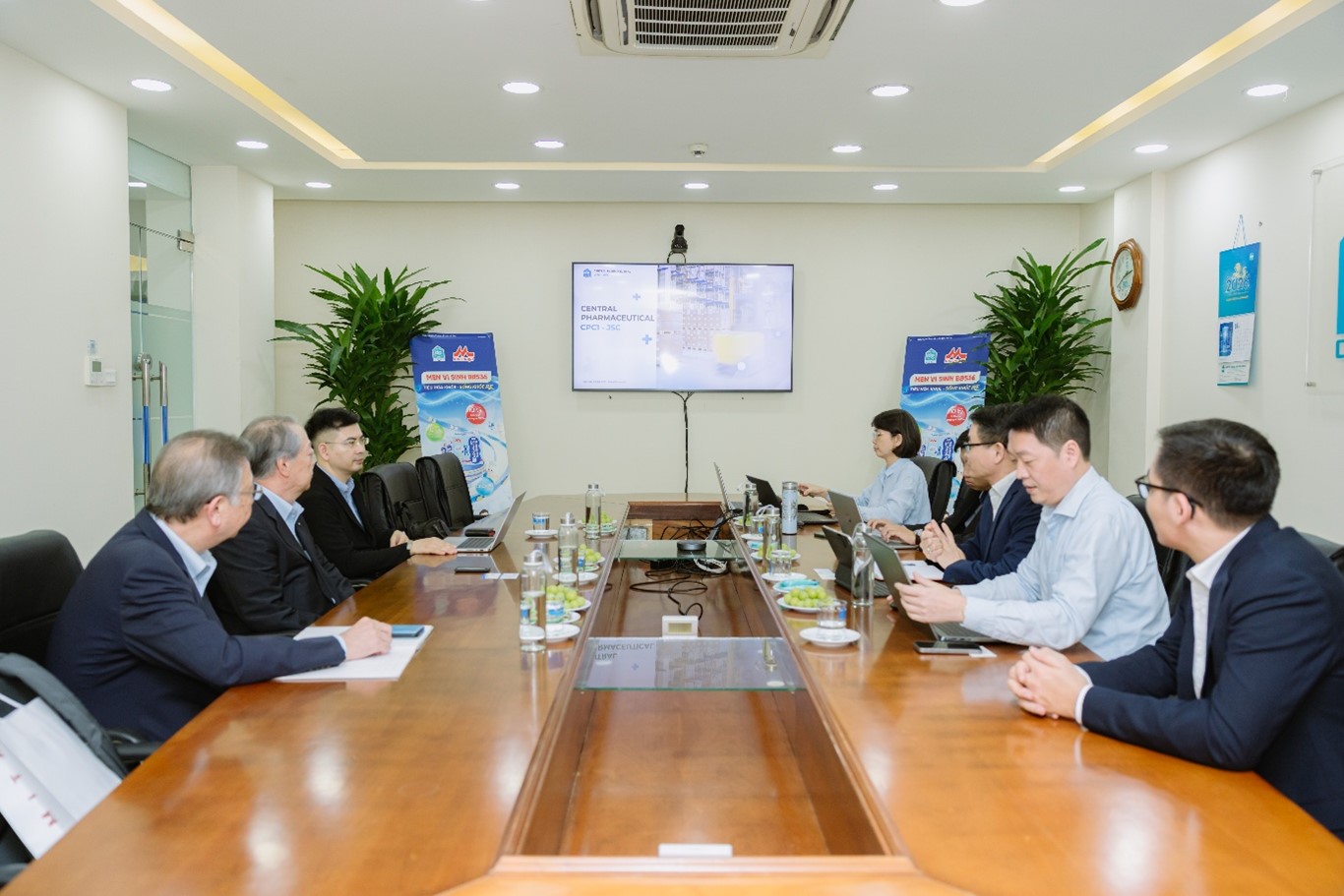 Toàn cảnh buổi làm việc giữa Ban lãnh đạo Công ty cổ phần Dược phẩm Trung ương CPC1 (phía bên phải) và đoàn đại diện Tomita Pharmaceutical (phía bên trái).